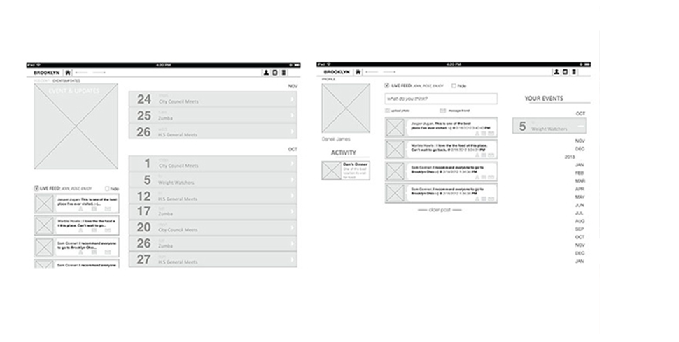 After surveys and paper user testing, I was able to edit the wireframes to cater to user expected outcome and input. This image depicts the calender interface and interaction when an date is selected.